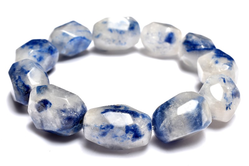 【1点物】希少◇濃いブルー デュモルチェライトインクォーツ 15.5-20x10.5-15.5mm 原石ラフカット ブレスレット _MA3879