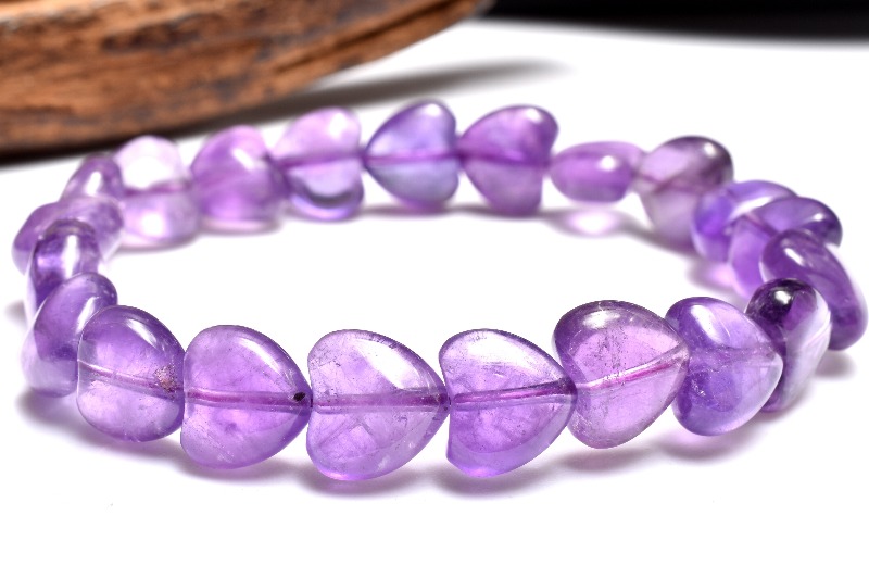 【1点物】高発色◇透明感 アメジスト 9.5x10mm ハート ブレスレット _MA3986