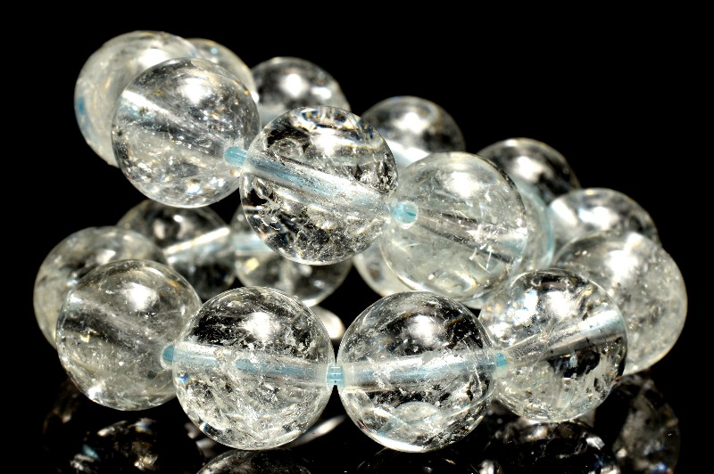 稀に虹入りの珠や、白雲母(モスコバイト)やトルマリンなどの内包物も見られます。