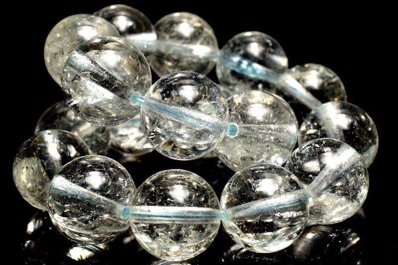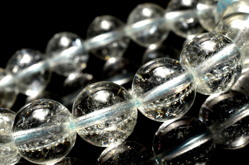 稀に虹入りの珠や、白雲母(モスコバイト)やトルマリンなどの内包物も見られます。