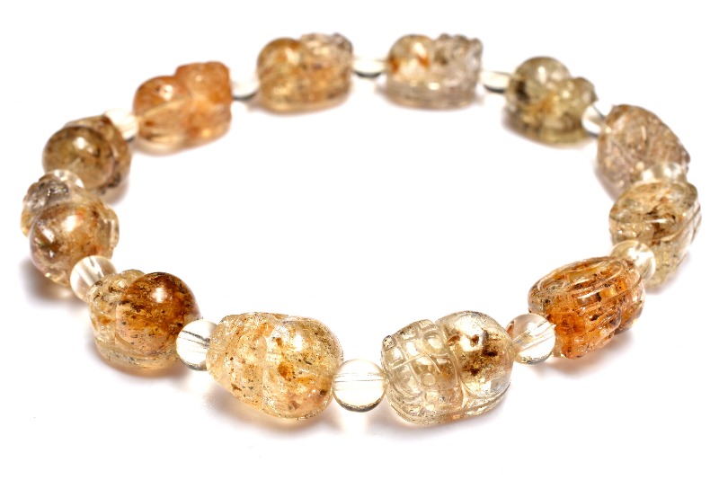 【1点物】幸運を引き寄せる! ゴールデンスキャポライト 10-11.5x8-8.5(丸玉4.5)mm 貔貅彫刻 ブレスレット _MA4104