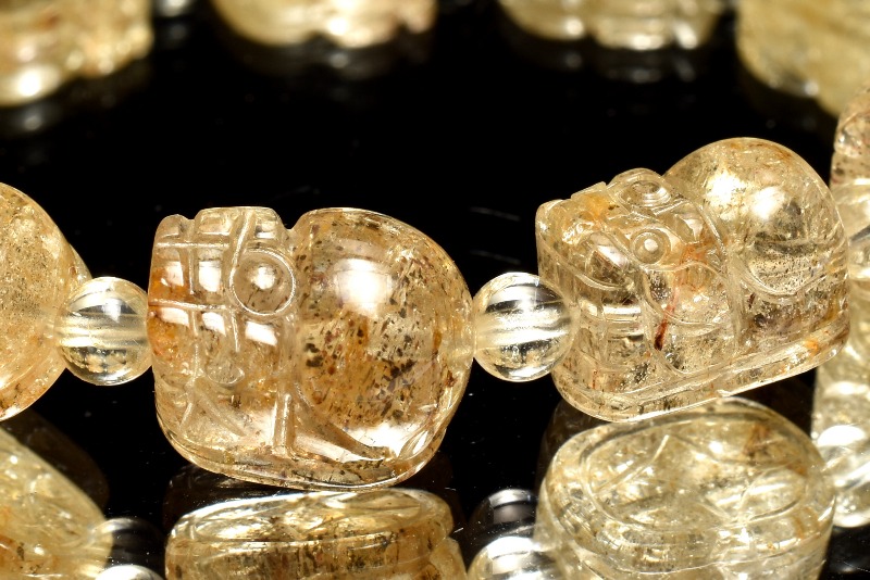 【1点物】幸運を引き寄せる! ゴールデンスキャポライト 13.5-14.5x9-11(丸玉4.5)mm 貔貅彫刻 ブレスレット _MA4108