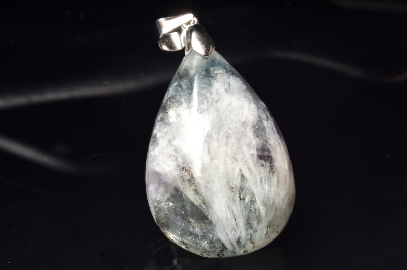 【1点物】Silver925◇希少 フェザーインフローライト 29x20mm ドロップ ペンダントトップ _PC3927