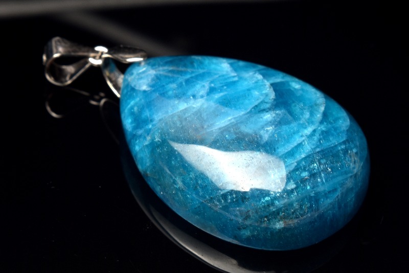 【1点物】Silver925◇高発色 ブルーアパタイト 30x22mm ドロップ ペンダントトップ _PC3952