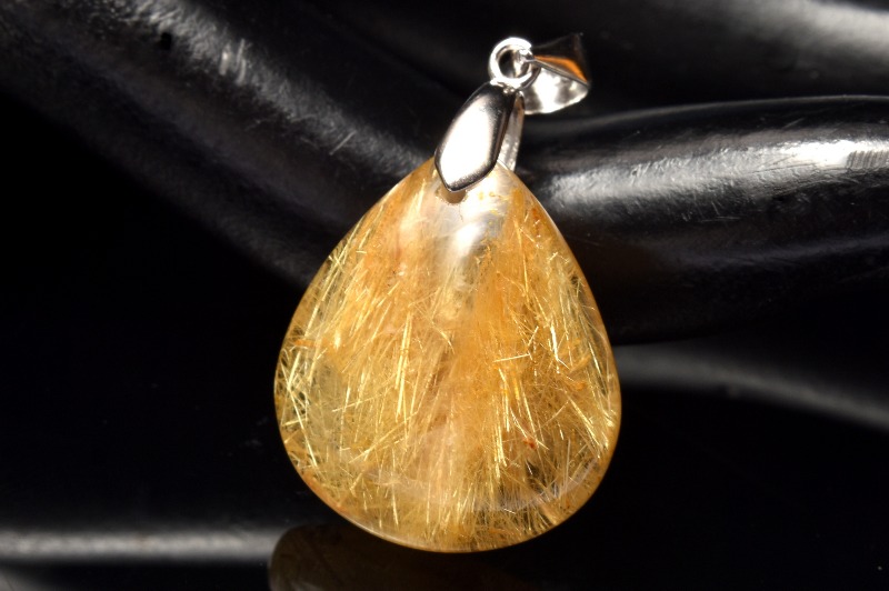 【1点物】Silver925◇濃密内包 ゴールドタイチンルチルクォーツ 20x17mm ドロップ ペンダントトップ _PC3970