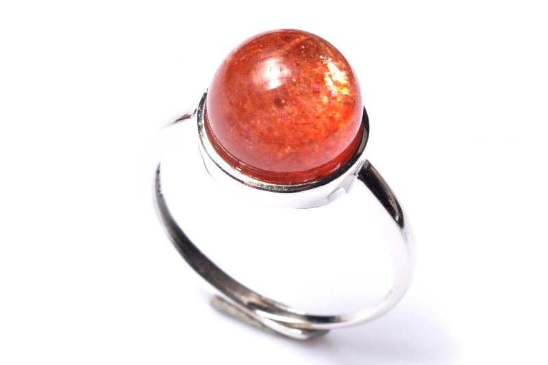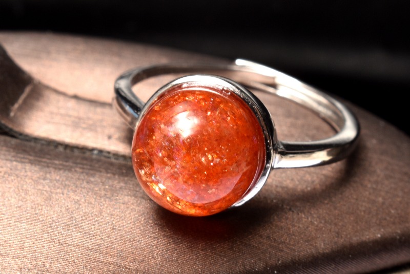 【1点物】Silver925◇高品質 マイカサンストーン 10mm 指輪リング(サイズ調整可) _PC4023