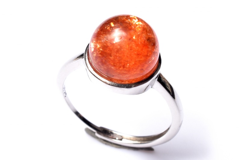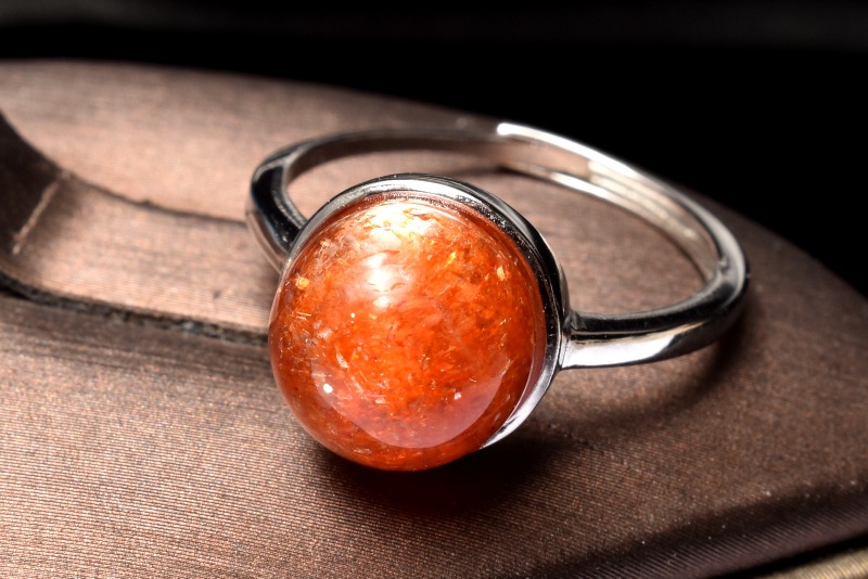【1点物】Silver925◇高品質 マイカサンストーン 10mm 指輪リング(サイズ調整可) _PC4025