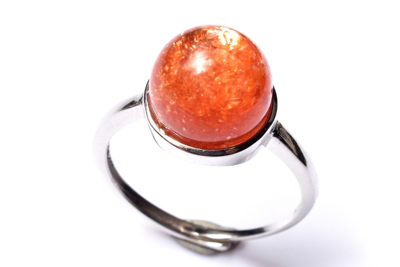 【1点物】Silver925◇高品質 マイカサンストーン 10mm 指輪リング(サイズ調整可) _PC4027