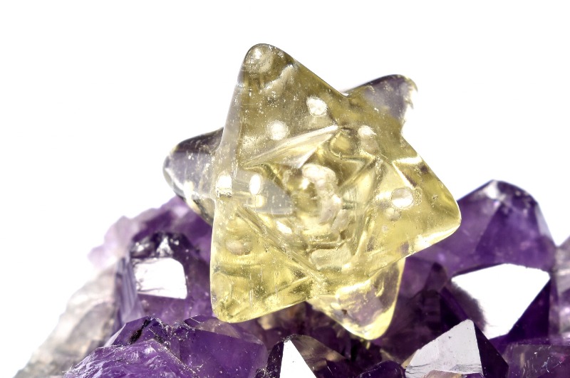 【1点物】AAA☆透明レモンカラー リビアングラス 11x10.5mm マカバスター 六芒星 ルース _PC4030