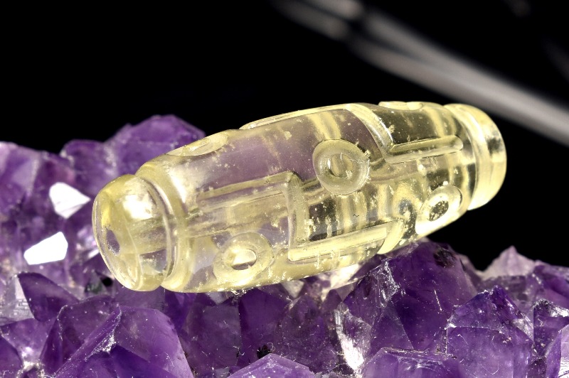 【1点物】AAA激レア☆透明レモンカラー リビアングラス 27x10mm 九眼天珠 ビーズ _PC4041