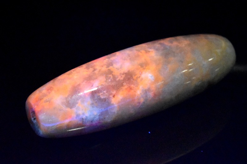 同じファトクロミズムの特徴をもつ石たちの中でも、ハックマナイトは紫外線を当ててから一定時間変色が持続するという珍しい性質があり、コレクターの間でも高い人気を誇ってます。