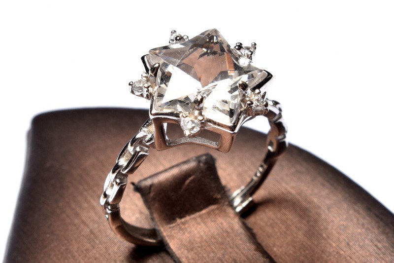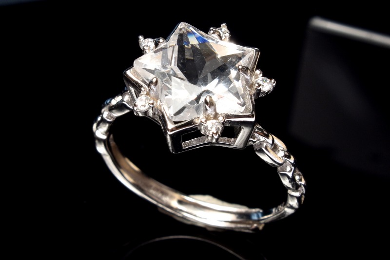 Silver925 水晶クリスタルクォーツ 10mm スター 指輪リング(サイズ調整可) 1個売り _PRG2303