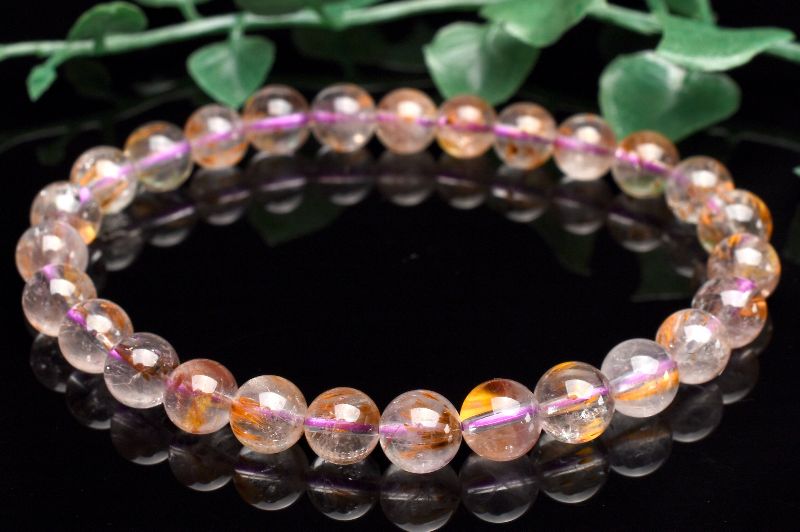 【1点物】希少◇黄金の羽根 カコクセナイトインアメジスト 6.5mm ブレスレット _U6484
