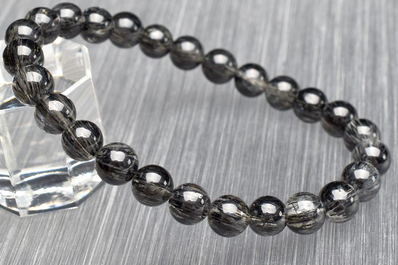 材質ブラックルチルクォーツ(トルマリンインクォーツ) 7mm 産地:ブラジル