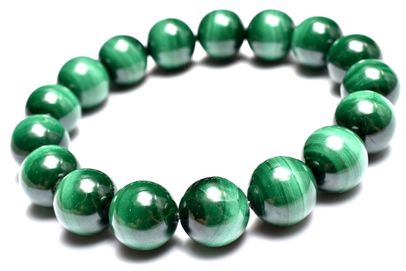 【1点物】高発色 マラカイト(孔雀石) 11.5mm ブレスレット _MA4185