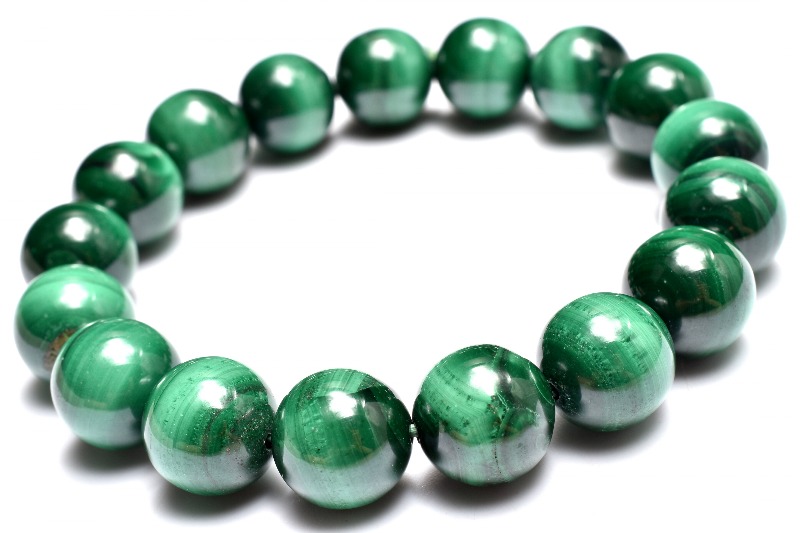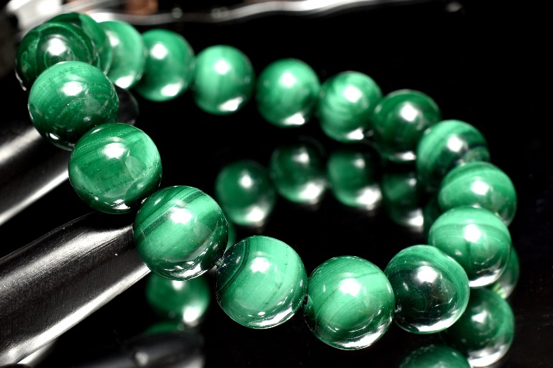 【1点物】高発色 マラカイト(孔雀石) 11.5mm ブレスレット _MA4186