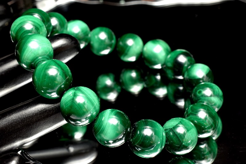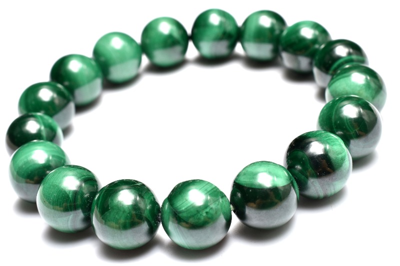 【1点物】高発色 マラカイト(孔雀石) 11.5-12mm ブレスレット _MA4187