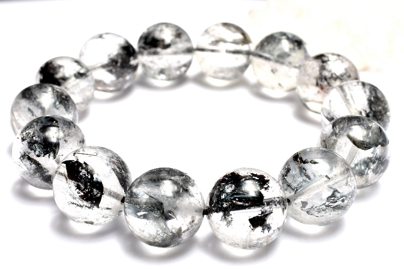 【1点物】ヒマラヤ産◇グラファイト入り エレスチャルクォーツ(ヒマラヤ水晶) 15-15.5mm ブレスレット _MA4226