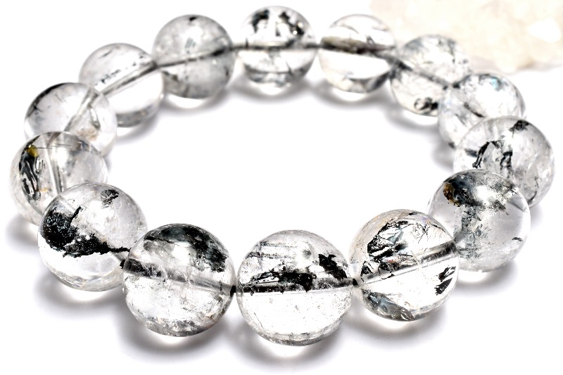 【1点物】ヒマラヤ産◇グラファイト入り エレスチャルクォーツ(ヒマラヤ水晶) 16-16.5mm ブレスレット _MA4228