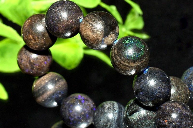 【1点物】遊色効果◇宇宙のよう ブラックマトリックスオパール 10.5mm ブレスレット _MA4263