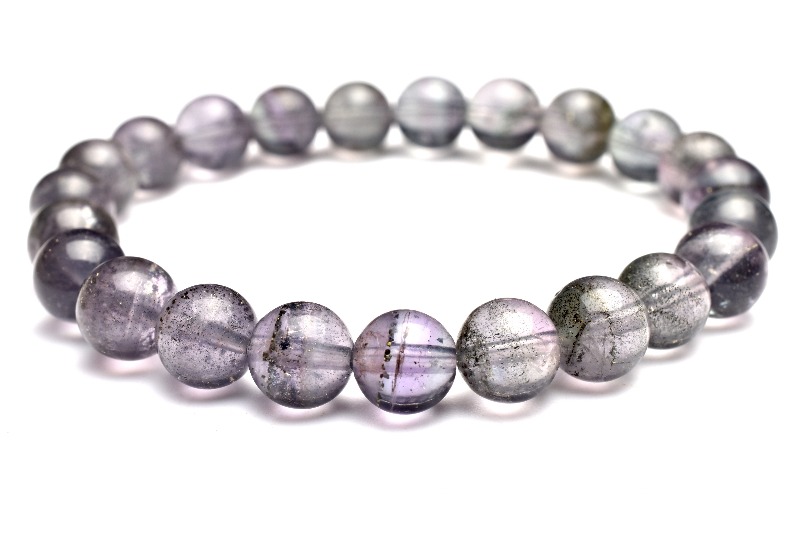 特徴・意味透明度の高いパープルブルーのフローライトに星々のようにキラキラ輝くパイライトが内包された幻想的で美しいブレスレットです。