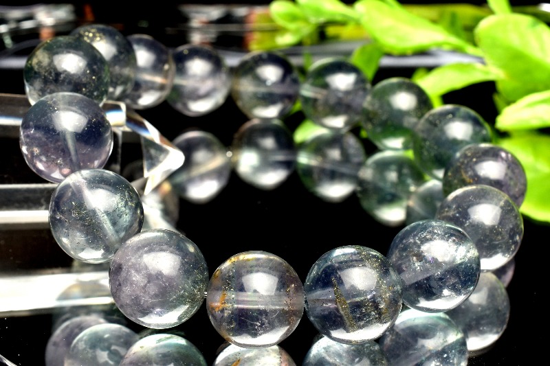 特徴・意味透明度の高いパープルブルーのフローライトに星々のようにキラキラ輝くパイライトが内包された幻想的で美しいブレスレットです。