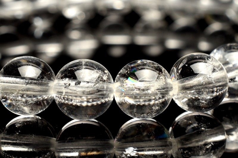 透明度が高く、稀にクラックが虹色に輝く珠がございます。