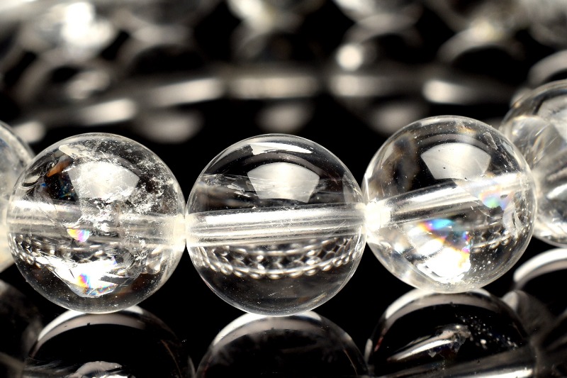 透明度が高く、稀にクラックが虹色に輝く珠がございます。