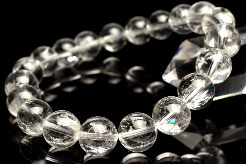 その名の通り、透明のクリスタル(水晶)の内部が虹色に輝く、たいへん美しい石です。