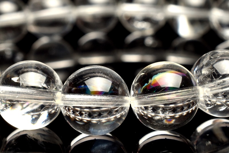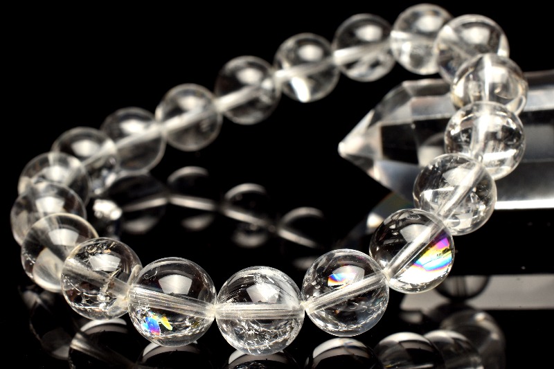 その名の通り、透明のクリスタル(水晶)の内部が虹色に輝く、たいへん美しい石です。