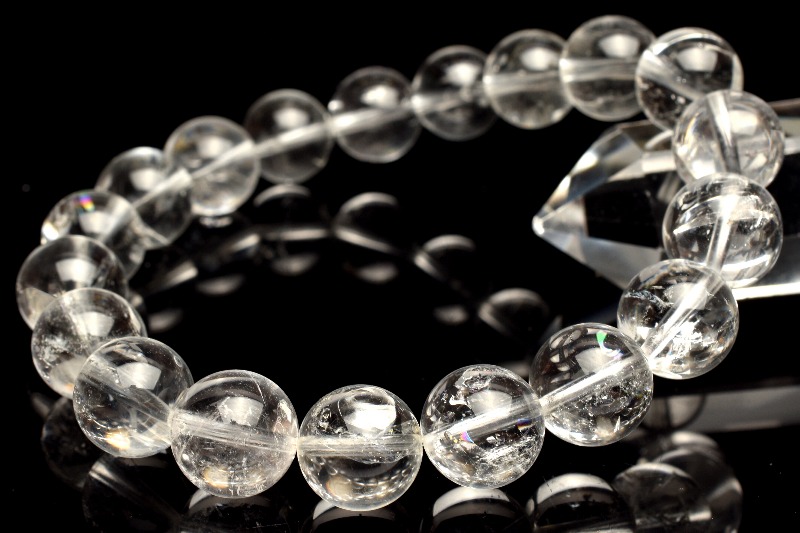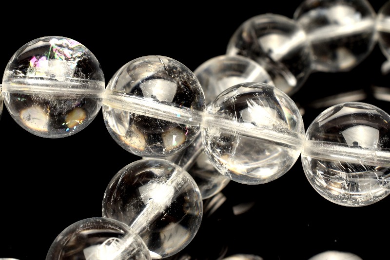 透明度が高く、稀にクラックが虹色に輝く珠がございます。