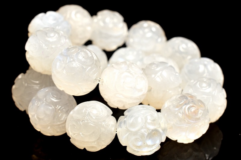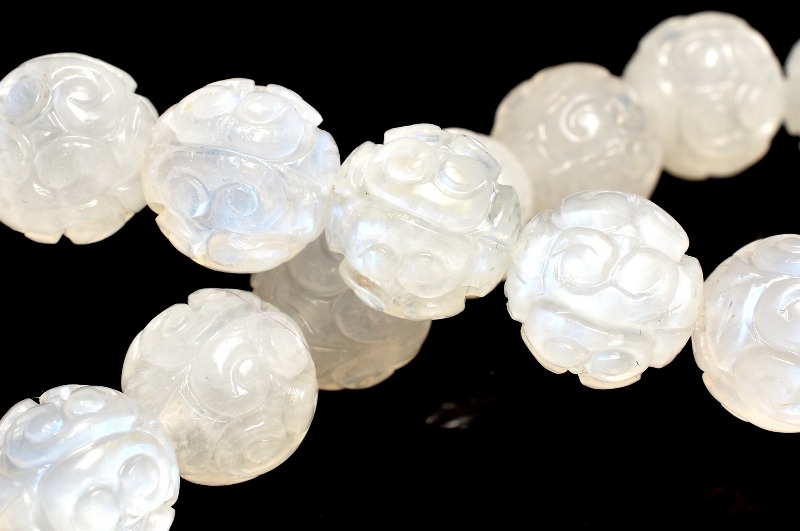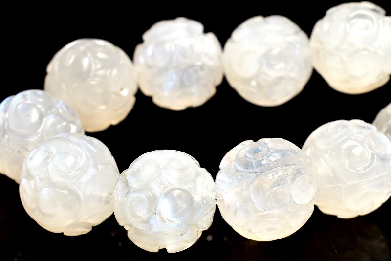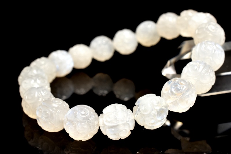 【1点物】繊細彫刻◇スリランカ産 ブルームーンストーン 9mm マニ車 ブレスレット _MA4370