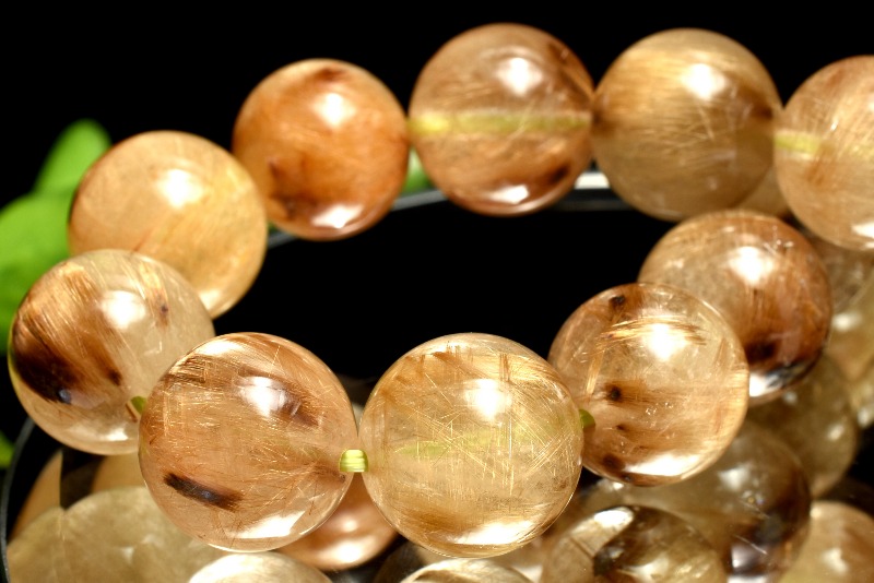 【1点物】人気◇板状金針 タイガータイチンルチルクォーツ 12-12.5mm ブレスレット _MA4397