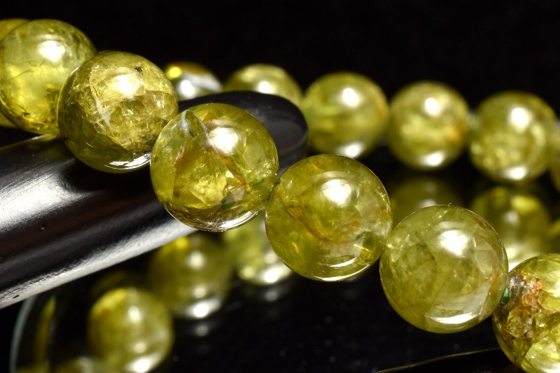 珠サイズが揃ったオリーブグリーンの美しさが魅力的。