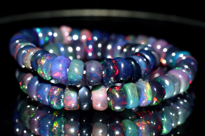 【1点物】AA☆エチオピア産 プレシャスブラックオパール 1-3x4.5mm ボタン ブレスレット _MA4456