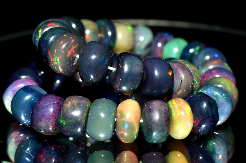 【1点物】AA☆エチオピア産 プレシャスブラックオパール 3-5x7mm ボタン ブレスレット _MA4459