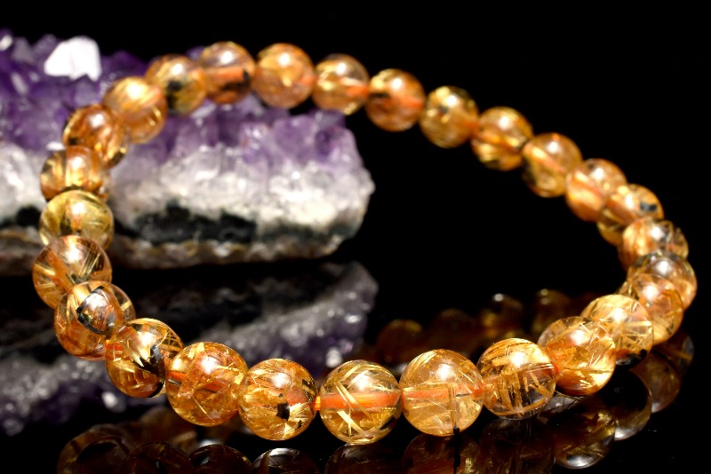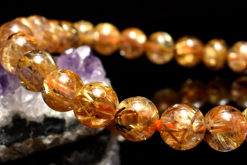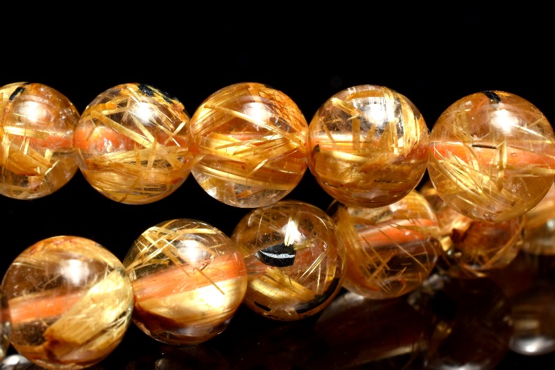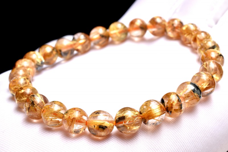 材質ヘマタイトインタイチンルチルクォーツ 7mm 産地:ブラジル