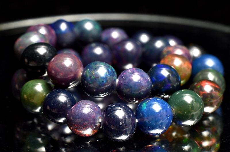 【1点物】AAA高品質☆エチオピア産 プレシャスブラックオパール 6mm ブレスレット _MA4495
