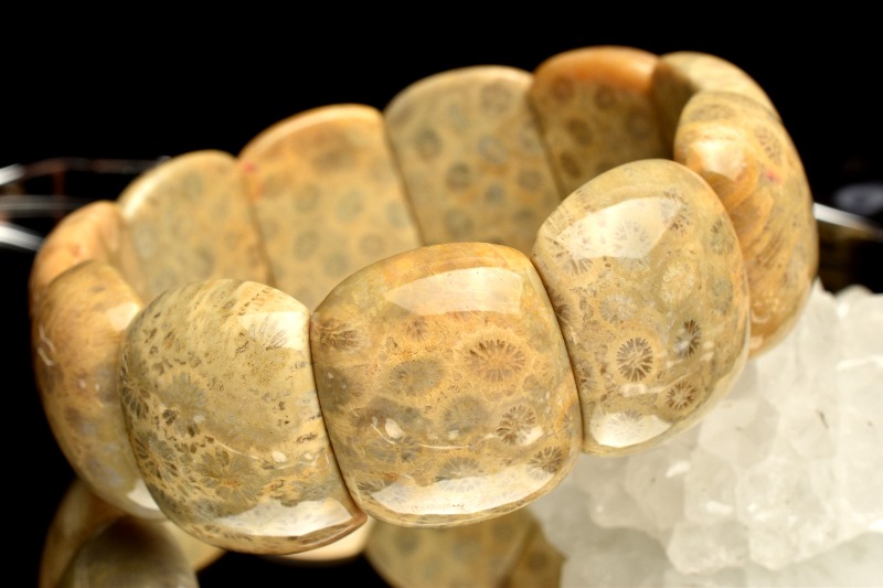 フォッシルコーラル(和名:化石珊瑚)は、太古の海の珊瑚の化石(4億年も昔のウミユリや珊瑚など古代生物)が長い年月をかけて石英化したものです。