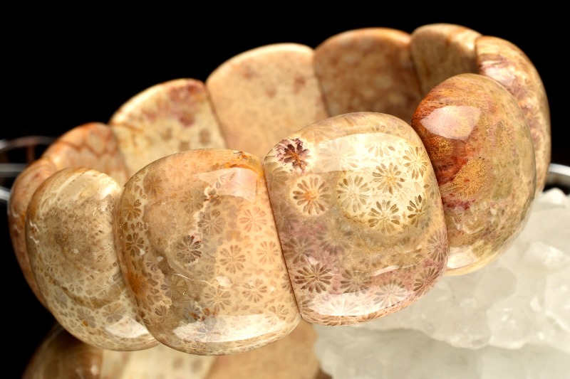 フォッシルコーラル(和名:化石珊瑚)は、太古の海の珊瑚の化石(4億年も昔のウミユリや珊瑚など古代生物)が長い年月をかけて石英化したものです。