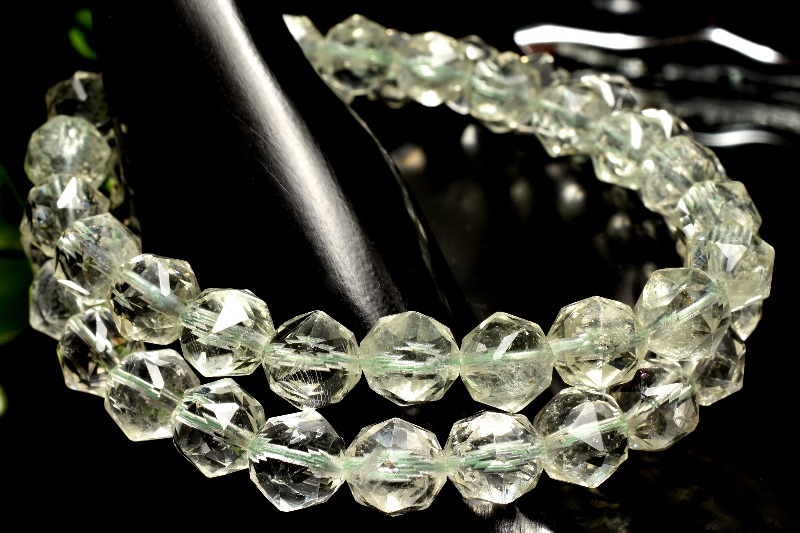 クリア◇美しい輝き グリーンアメジスト 7.5mm スターカット ブレスレット 1個売り _BG5789-75