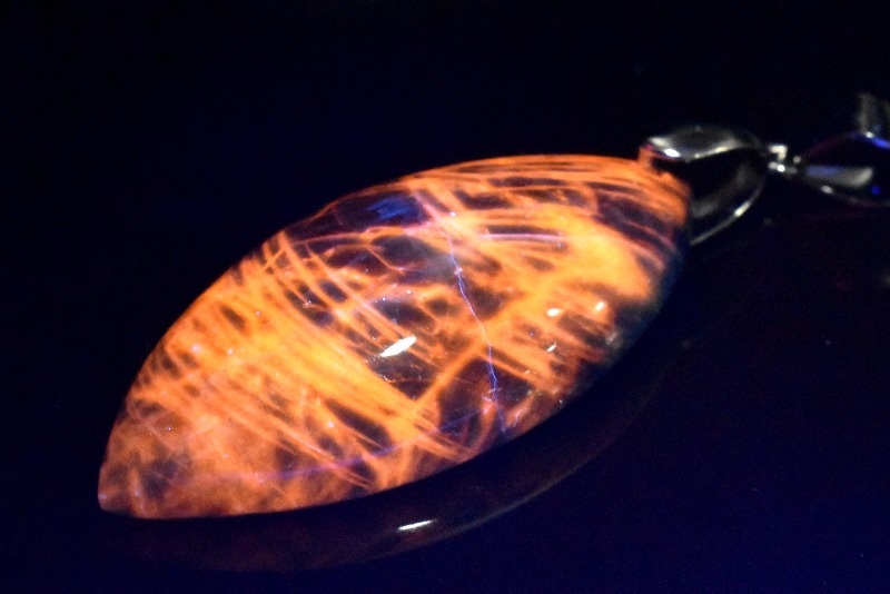 同じファトクロミズムの特徴をもつ石たちの中でも、ハックマナイトは紫外線を当ててから一定時間変色が持続するという珍しい性質があり、コレクターの間でも高い人気を誇ってます。