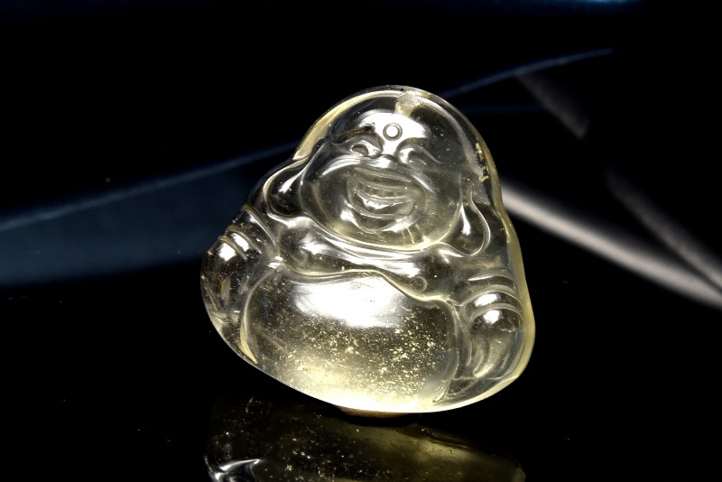 【1点物】AA激レア☆透明レモンカラー リビアングラス 19x19mm 布袋尊彫刻 トップ穴 ルース _PC4239