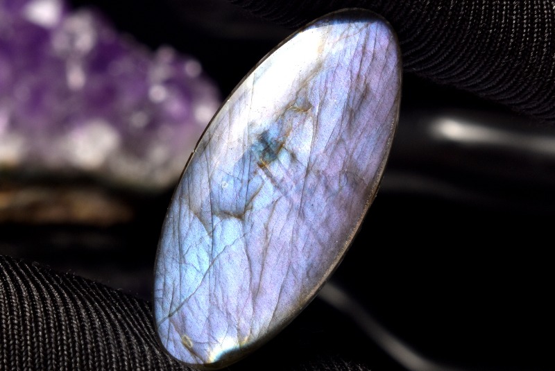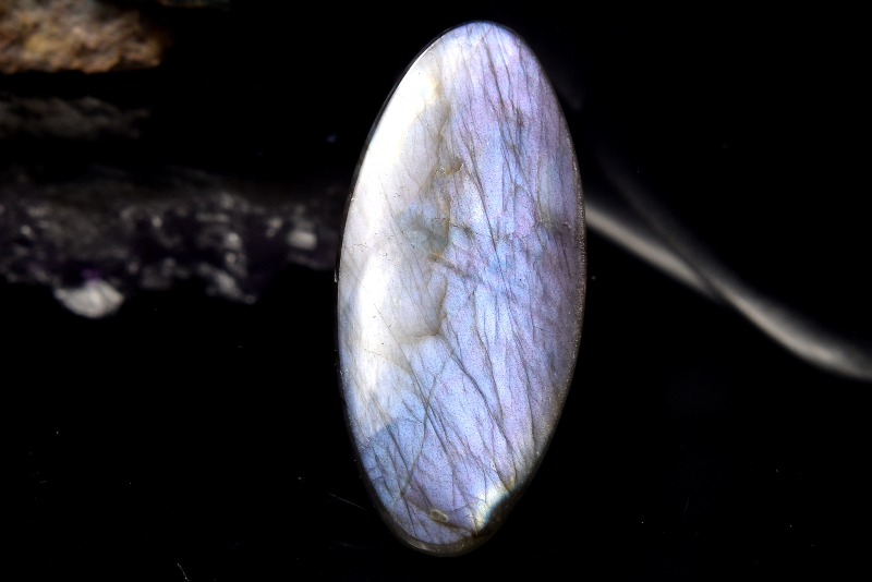 ラブラドライトの特色は、なんと言ってもその美しい閃光です。冷たそうでいて、非常に深みのある光は「ラブラドレッセンス(ラブラド光線)」と呼ばれます。