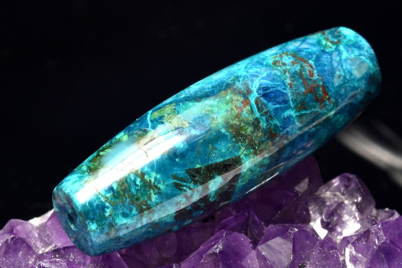 ブルーが本体の多くを占め、グリーンやブラウンなどのカラーが混ざり合って、出来ているため、丸く加工されたクリソコラは、宇宙から見た地球のような外観となっています。