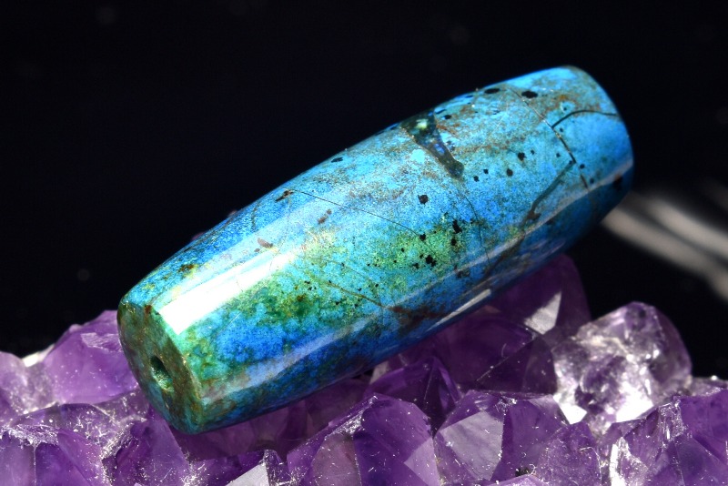 【1点物】高発色ブルー クリソコラ 30x11mm 天珠型(貫通穴) ビーズ _PC4268