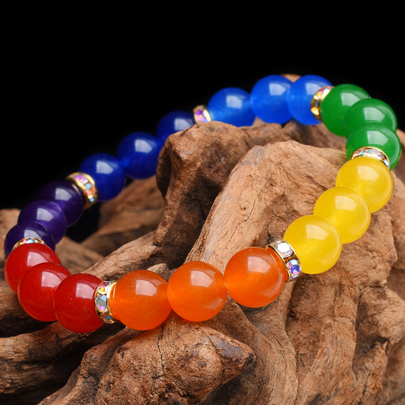 【七難即滅 七福即生】 カラージェイド グラデーション 7色チャクラ厄除け 運気向上 開運 お守り ブレスレット オリジナル商品 _A1308