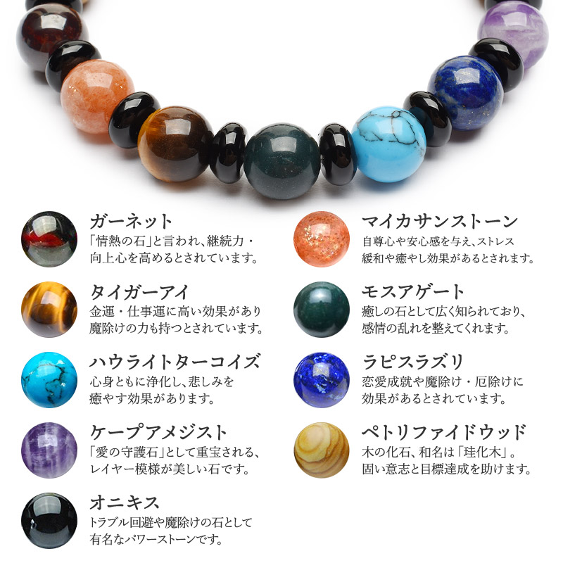 【七難即滅 七福即生】 ガーネット マイカサンストーン アメジスト 珪化木など 7色チャクラ厄除け 運気向上 開運 お守り ブレスレット オリジナル商品 _A1309
