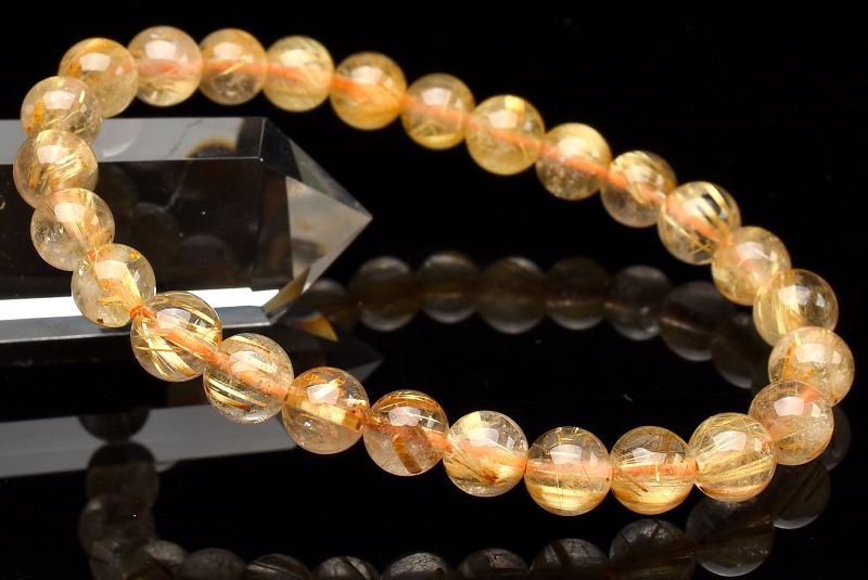 【1点物】黄金の輝き ゴールドタイチンルチルクォーツ 7mm ブレスレット _U6602