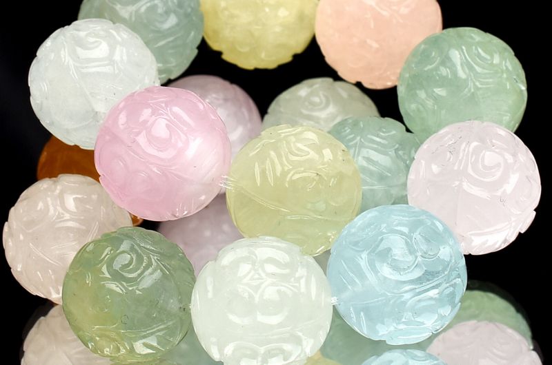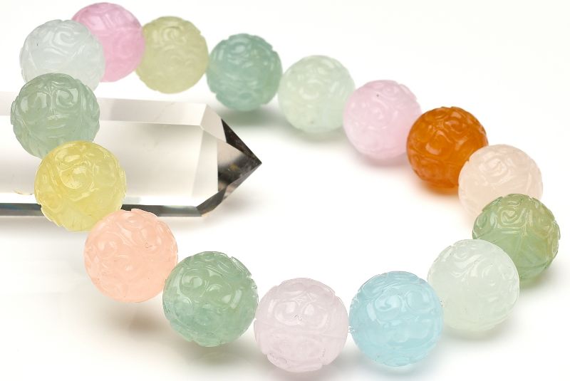 【1点物】繊細彫刻◇マルチカラー MIXベリル(アクアマリン) 13.5mm マニ車 ブレスレット _U6632